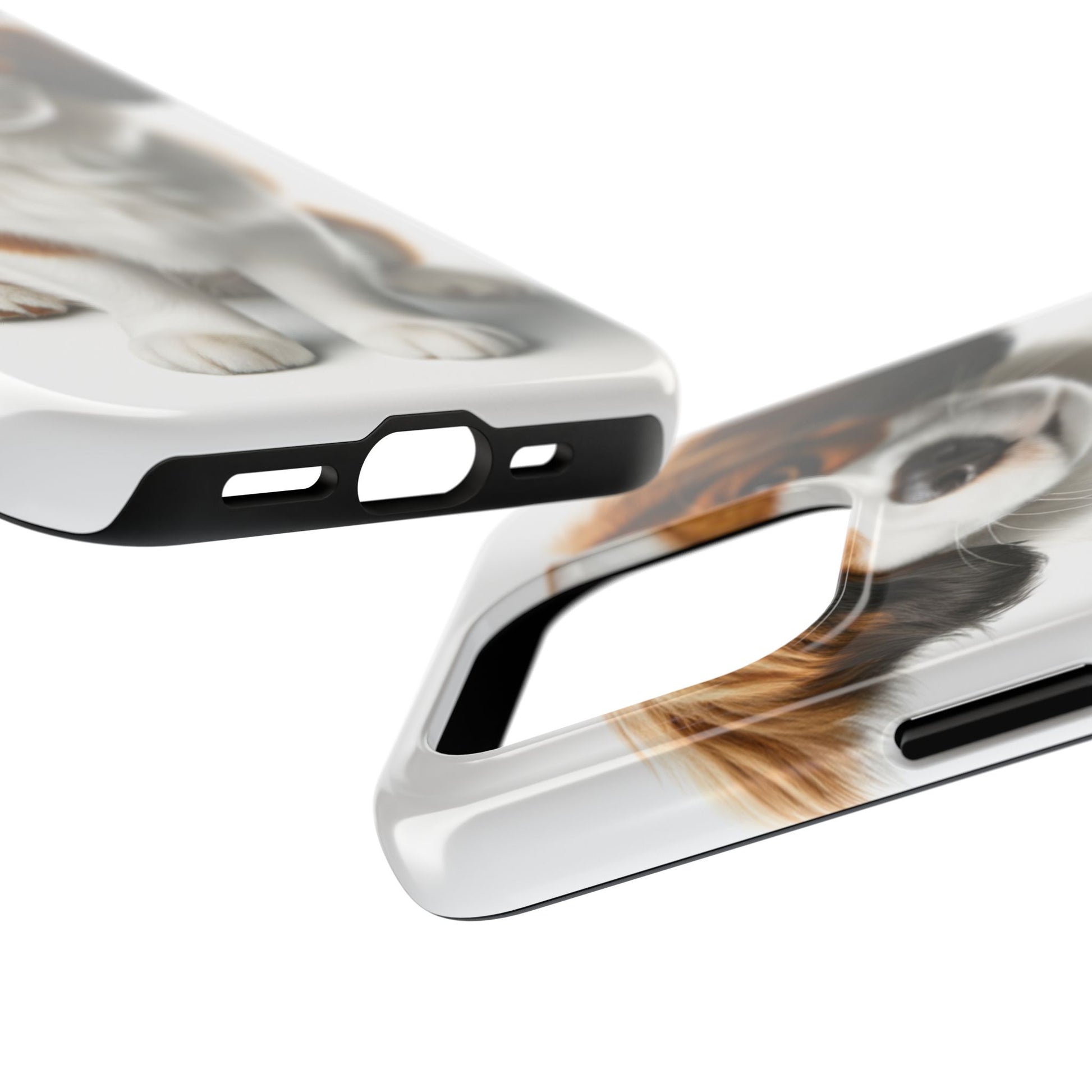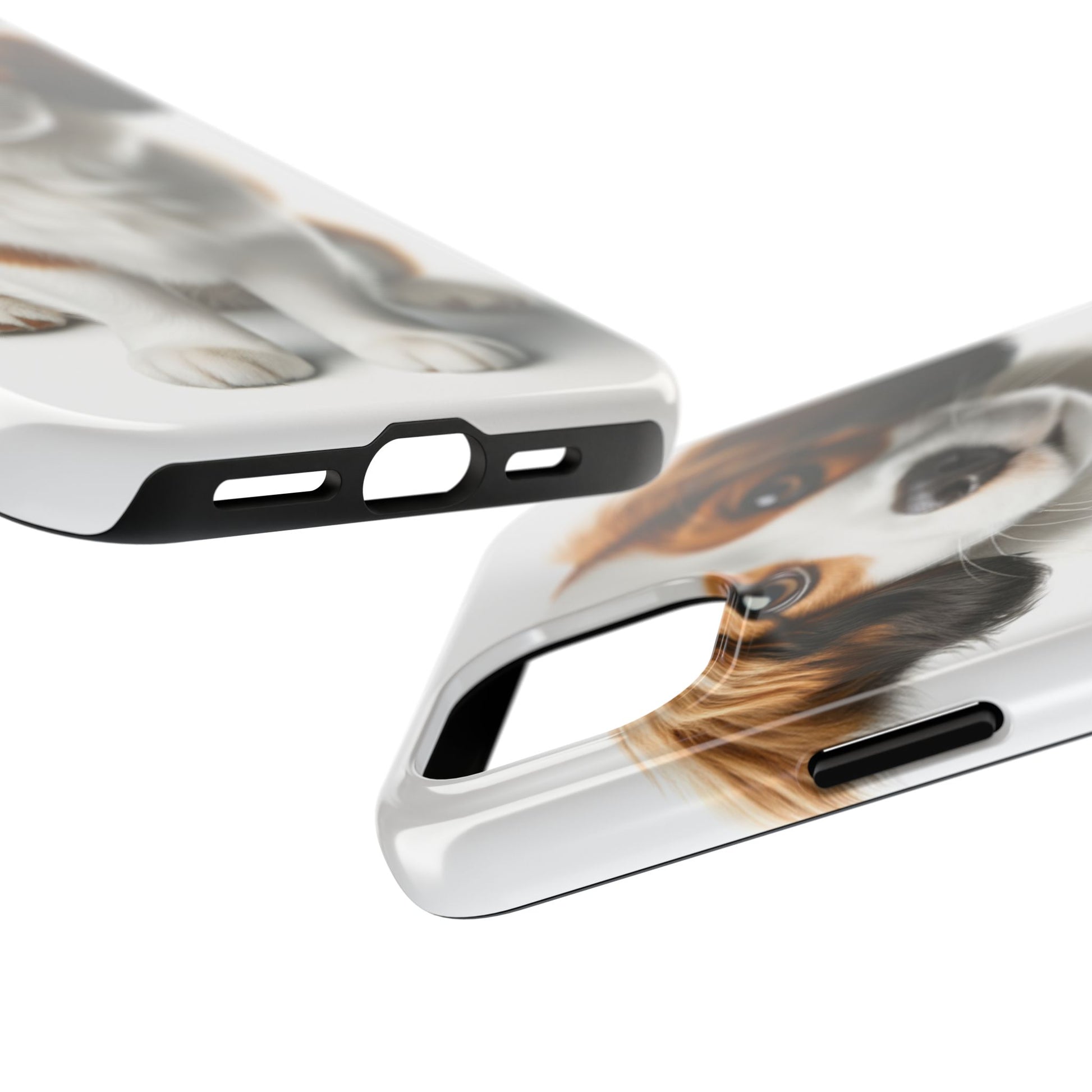 Capture the charm of man's best friend with this incredibly detailed dog phone case. Showcasing a hyper-realistic, high-resolution image of an adorable full-body dog portrait, this accessory radiates a professional studio-shot aesthetic against a pristine white backdrop. Fashioned to perfectly fit and protect your phone, it combines style and practicality flawlessly.