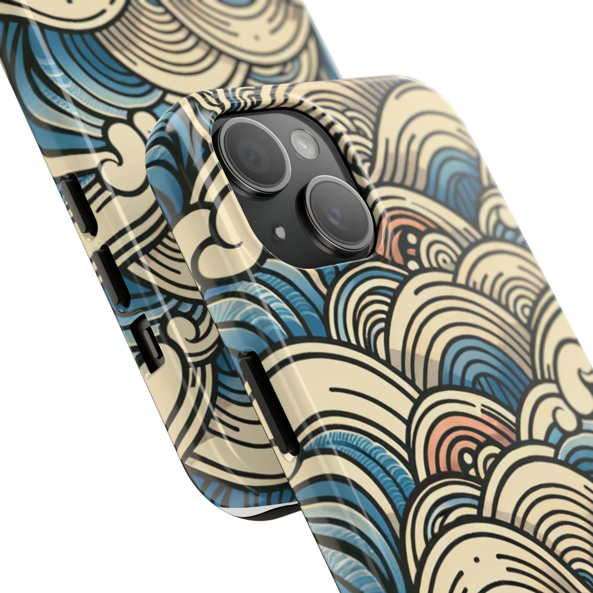 Unveiling our captivating phone case, imbued with the timeless style of Japanese Seigaiha water waves. A symmetrical pattern of random colored waves dance across an off-white backdrop, infusing a note of tranquility in your everyday life. Artfully constructed in a vector design, this case pays homage to Japanese artistry, uniting aesthetic appeal and cultural heritage in a harmonious blend. #Seigaiha #JapaneseArt #PhoneCase #PatternDesign #WaterWaves #Elegant #CulturalHeritage #Aesthetic #VectorDesign #PhoneAccessories