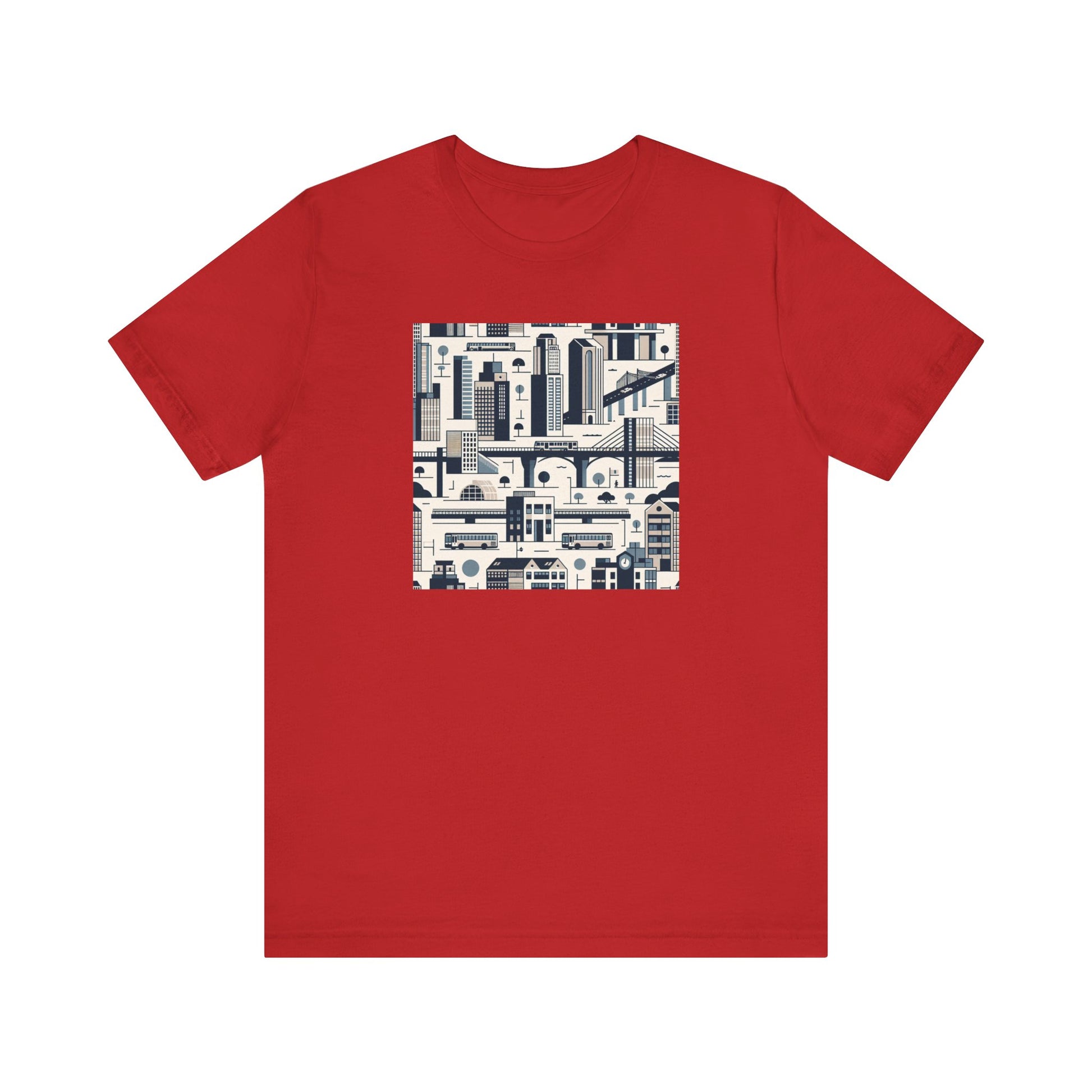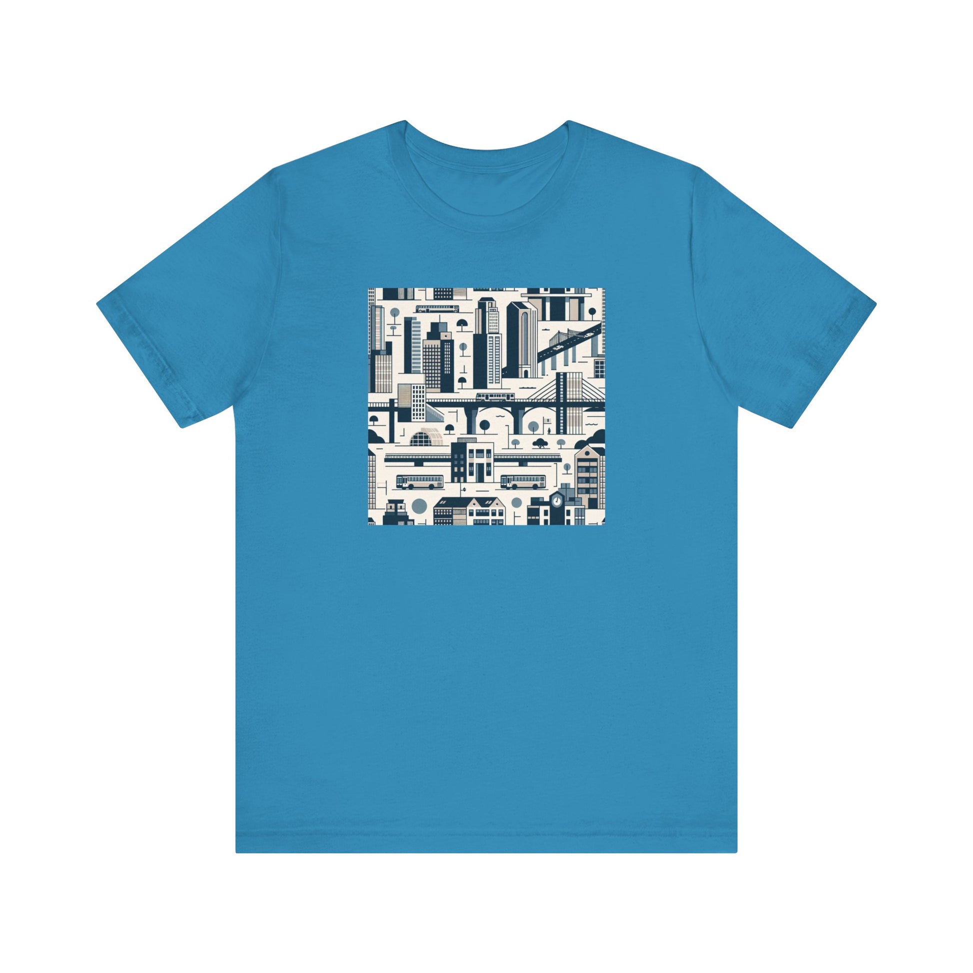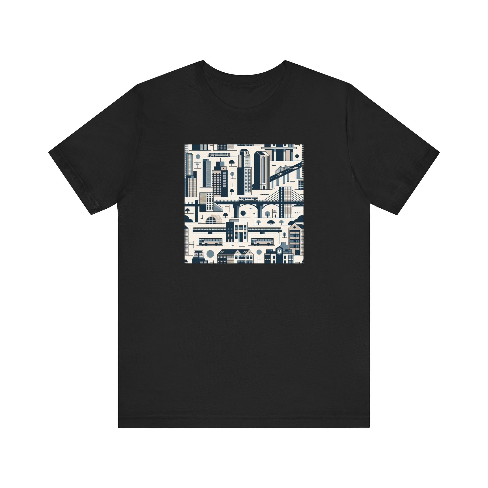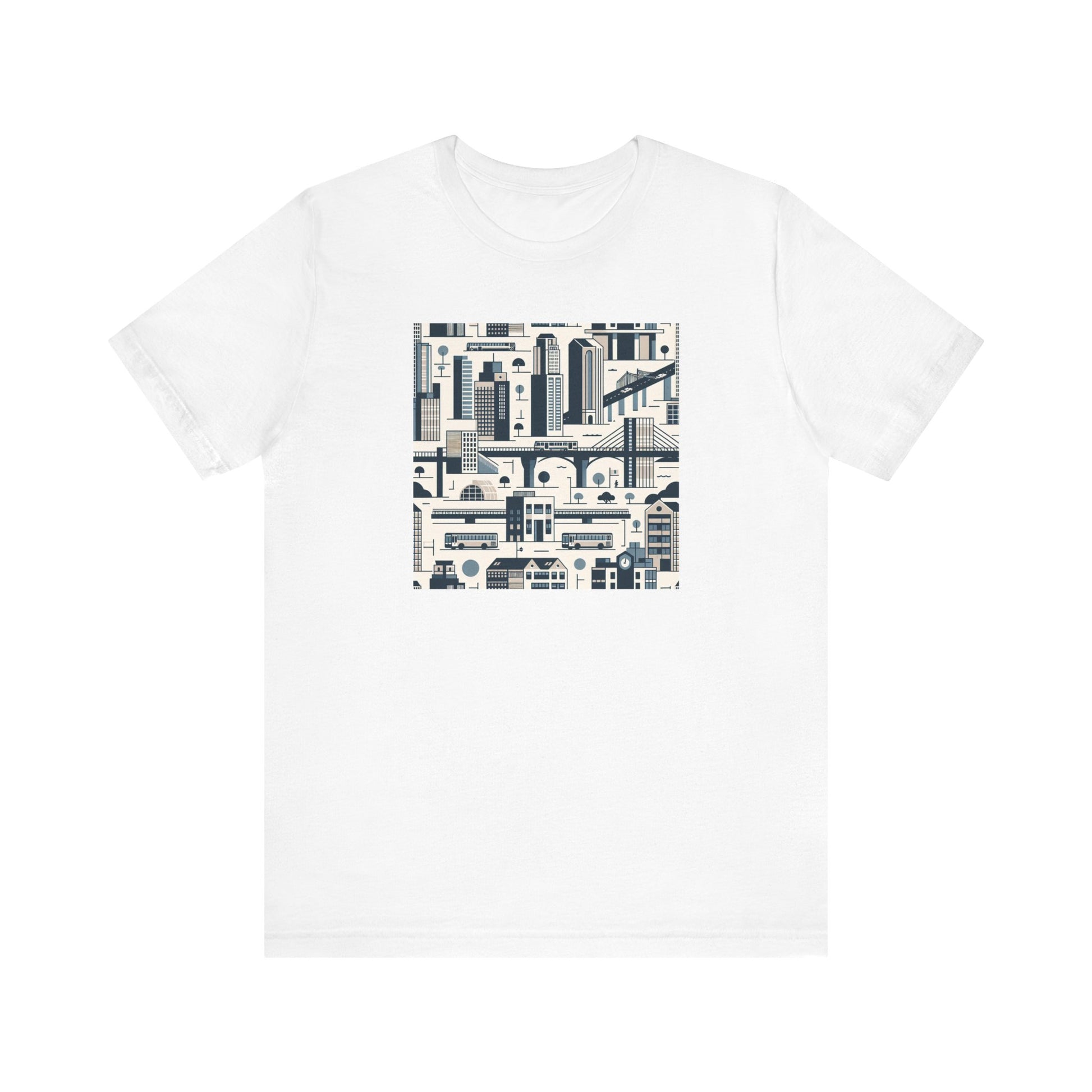 Discover our Urban Minimalist T-shirt, adorned with a seamless pattern inspired by cityscapes. Features subtle geometric sketches of skyscrapers, bridges, buses, and parks in a stylish monochrome palette, keeping simplicity and elegance at its core. Step up your style and pay homage to the bustling city life.