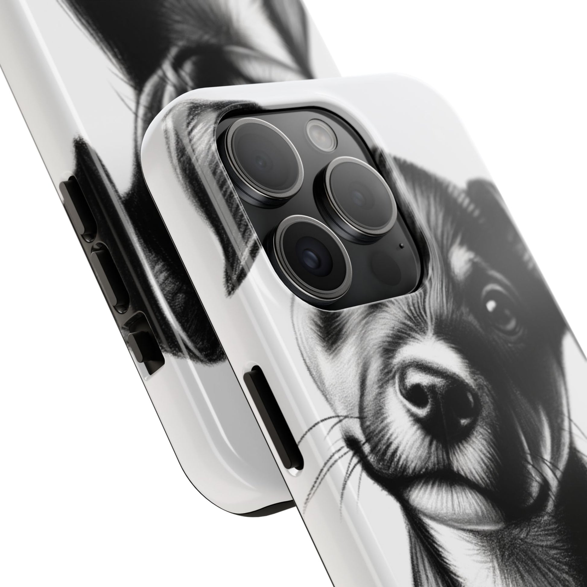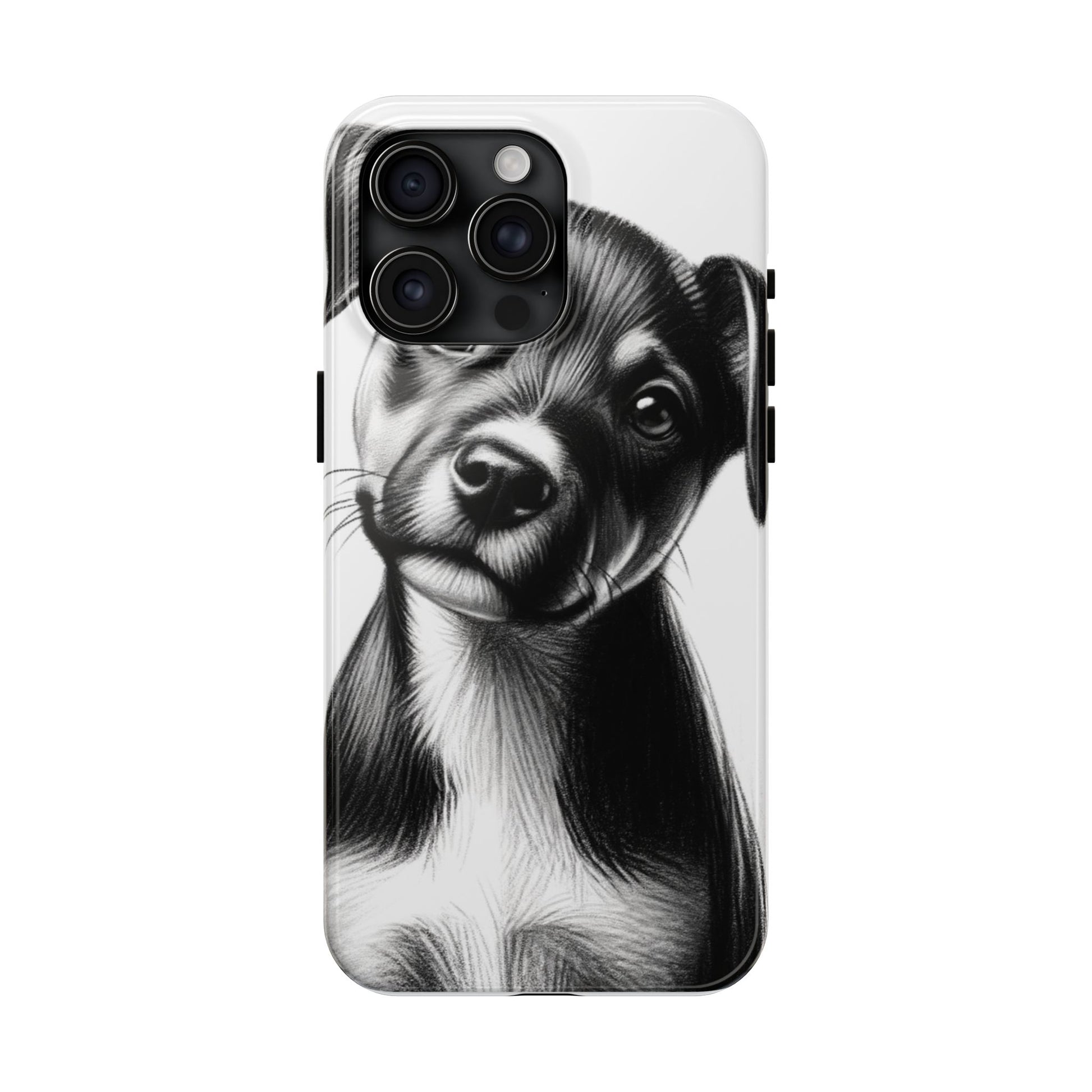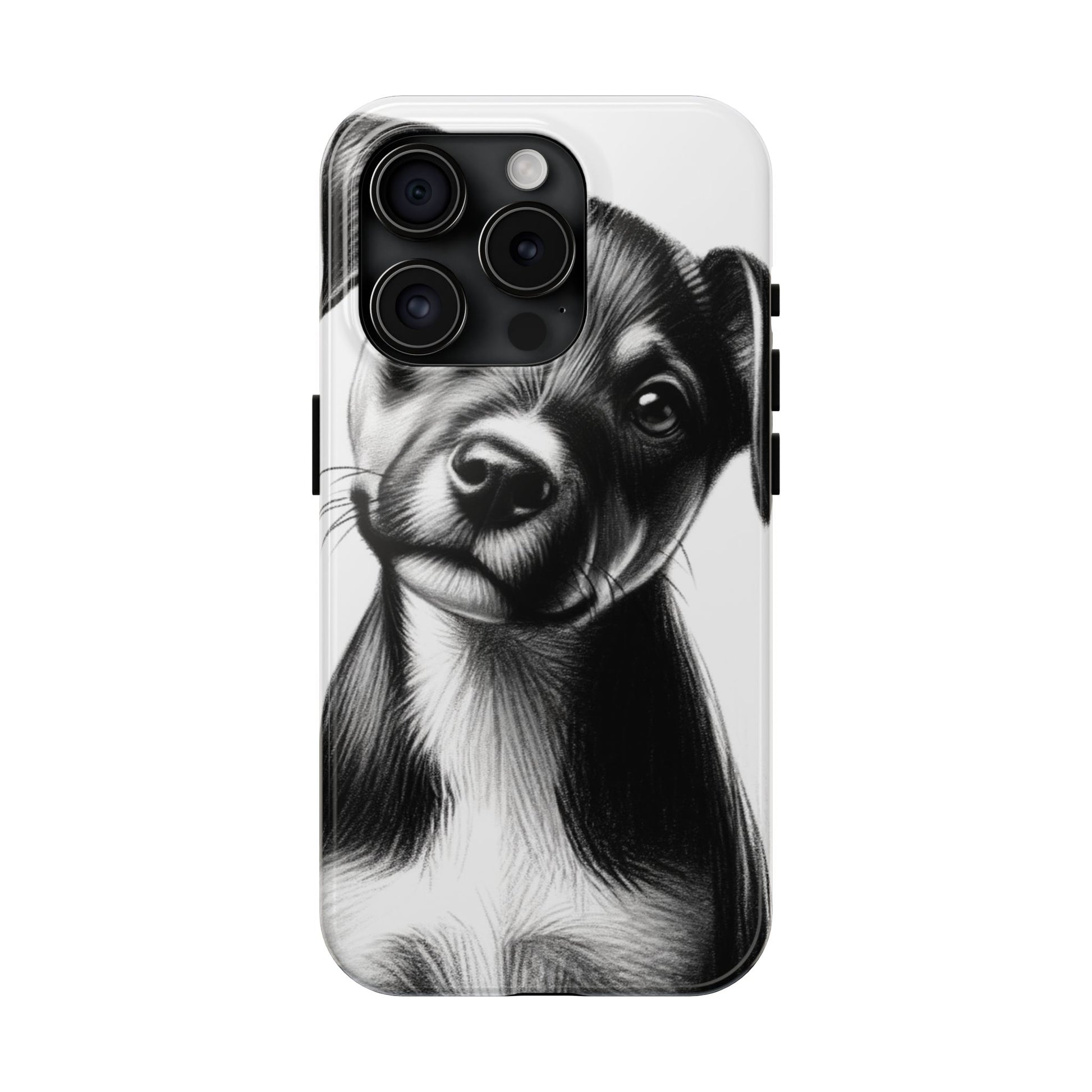 "Behold our captivating Dog Charcoal Art Phone Case! Featuring a charming realistic charcoal drawing of a forward-facing dog, it encapsulates curiosity in its tilted head and attentively raised ear. Set against a crisp white background, this design evokes a blend of cute and chic. Perfect for dog-lovers and art aficionados alike! #DogLovers #PhoneCase #CharcoalArt #PuppyLove #ArtisticDesign #PhoneAccessories #CuteDogs #ArtLovers #DogArt #UniqueDesigns"