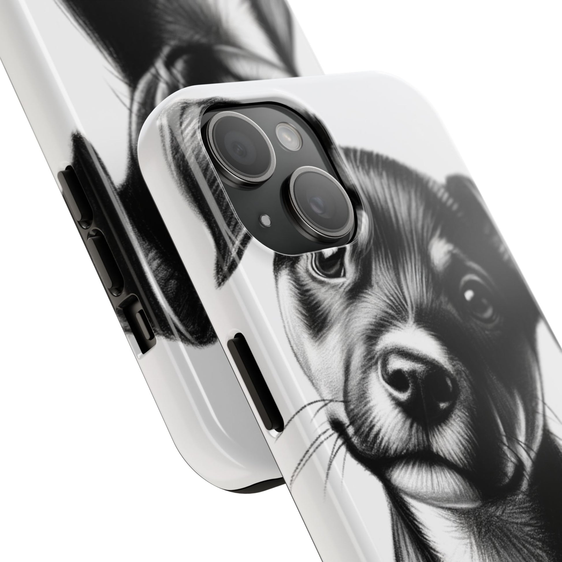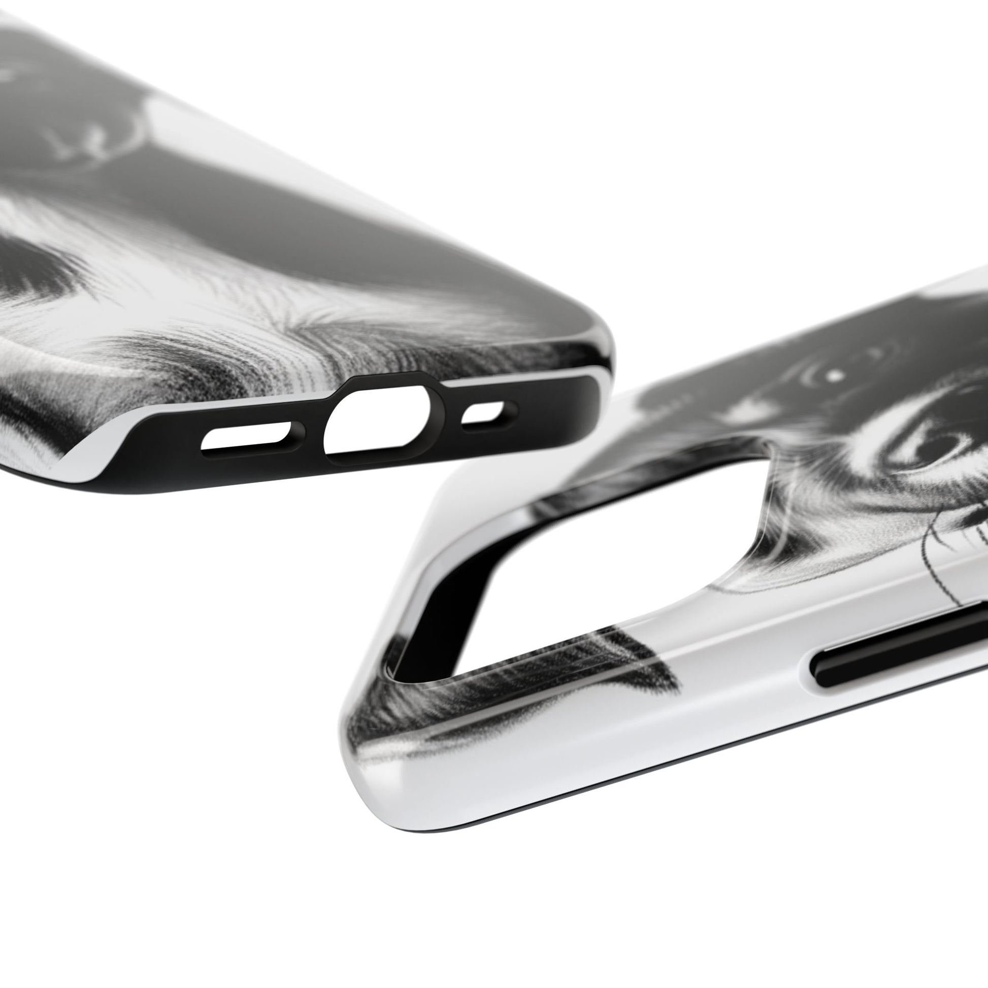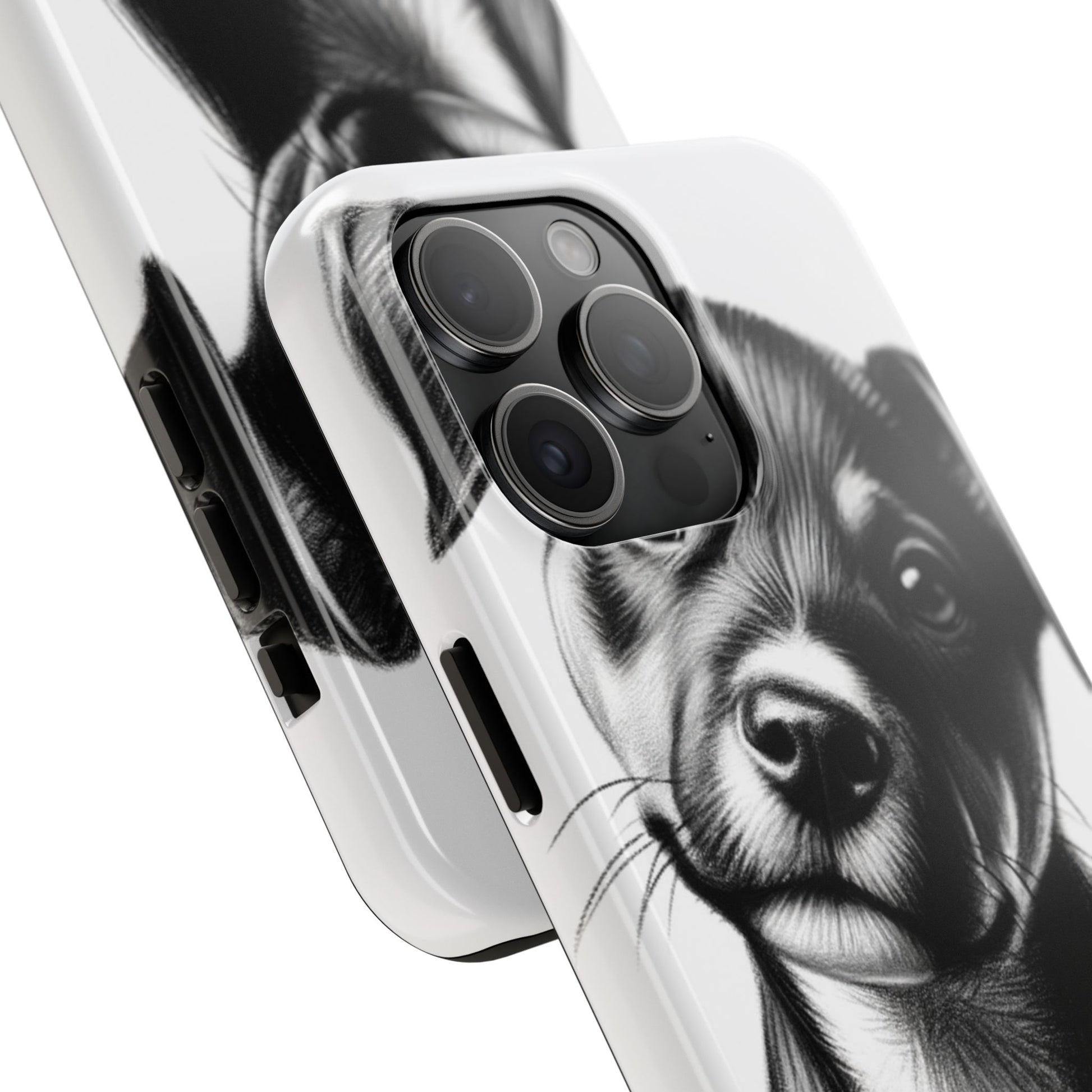 "Behold our captivating Dog Charcoal Art Phone Case! Featuring a charming realistic charcoal drawing of a forward-facing dog, it encapsulates curiosity in its tilted head and attentively raised ear. Set against a crisp white background, this design evokes a blend of cute and chic. Perfect for dog-lovers and art aficionados alike! #DogLovers #PhoneCase #CharcoalArt #PuppyLove #ArtisticDesign #PhoneAccessories #CuteDogs #ArtLovers #DogArt #UniqueDesigns"