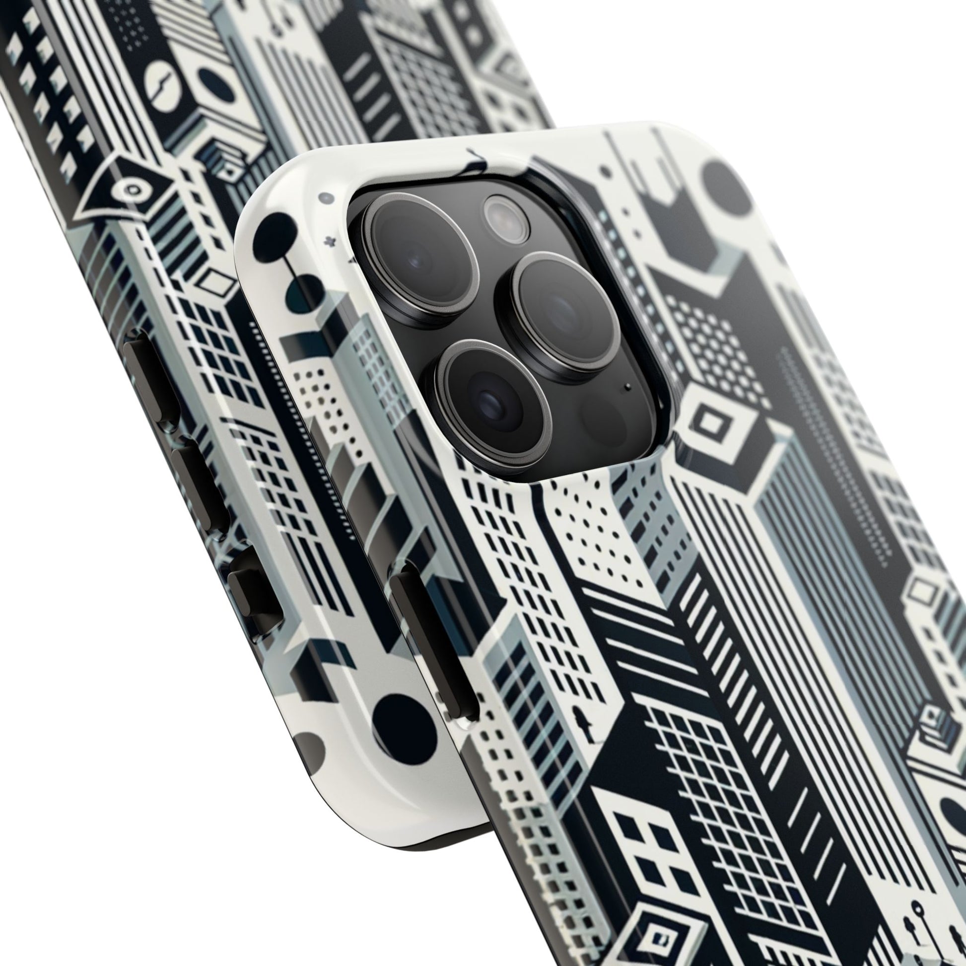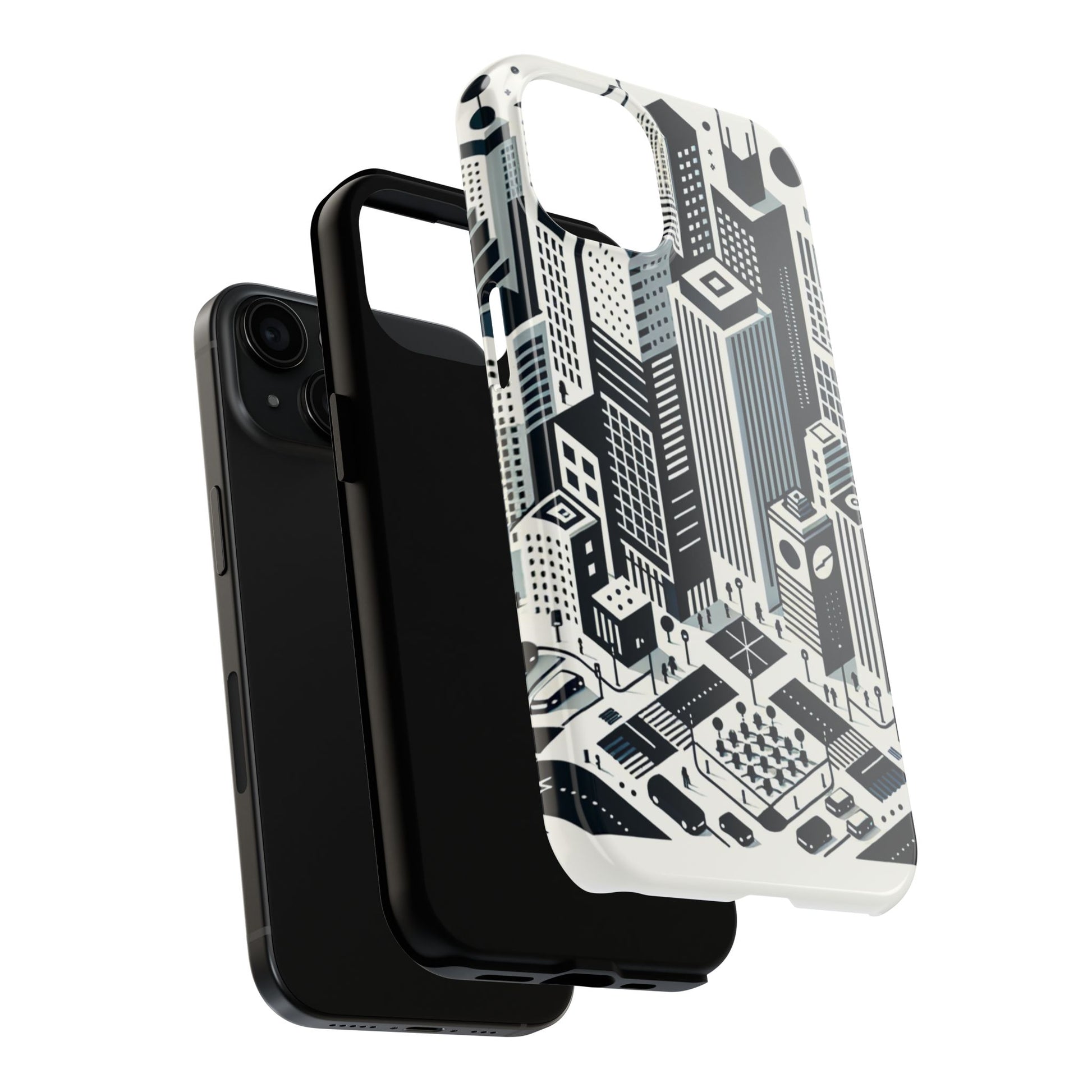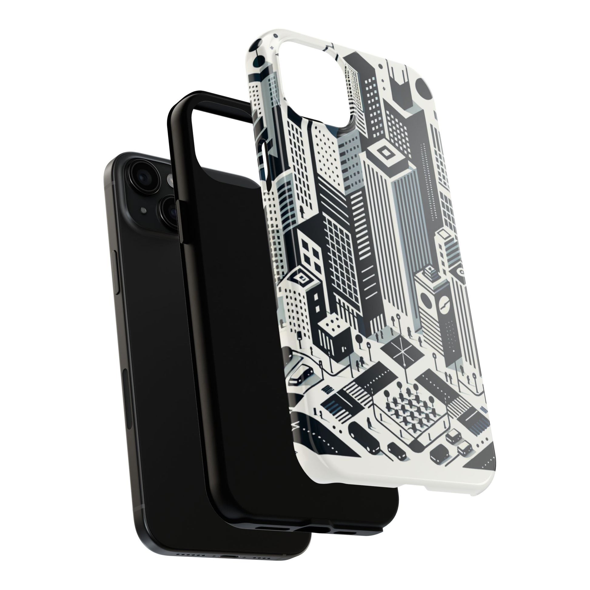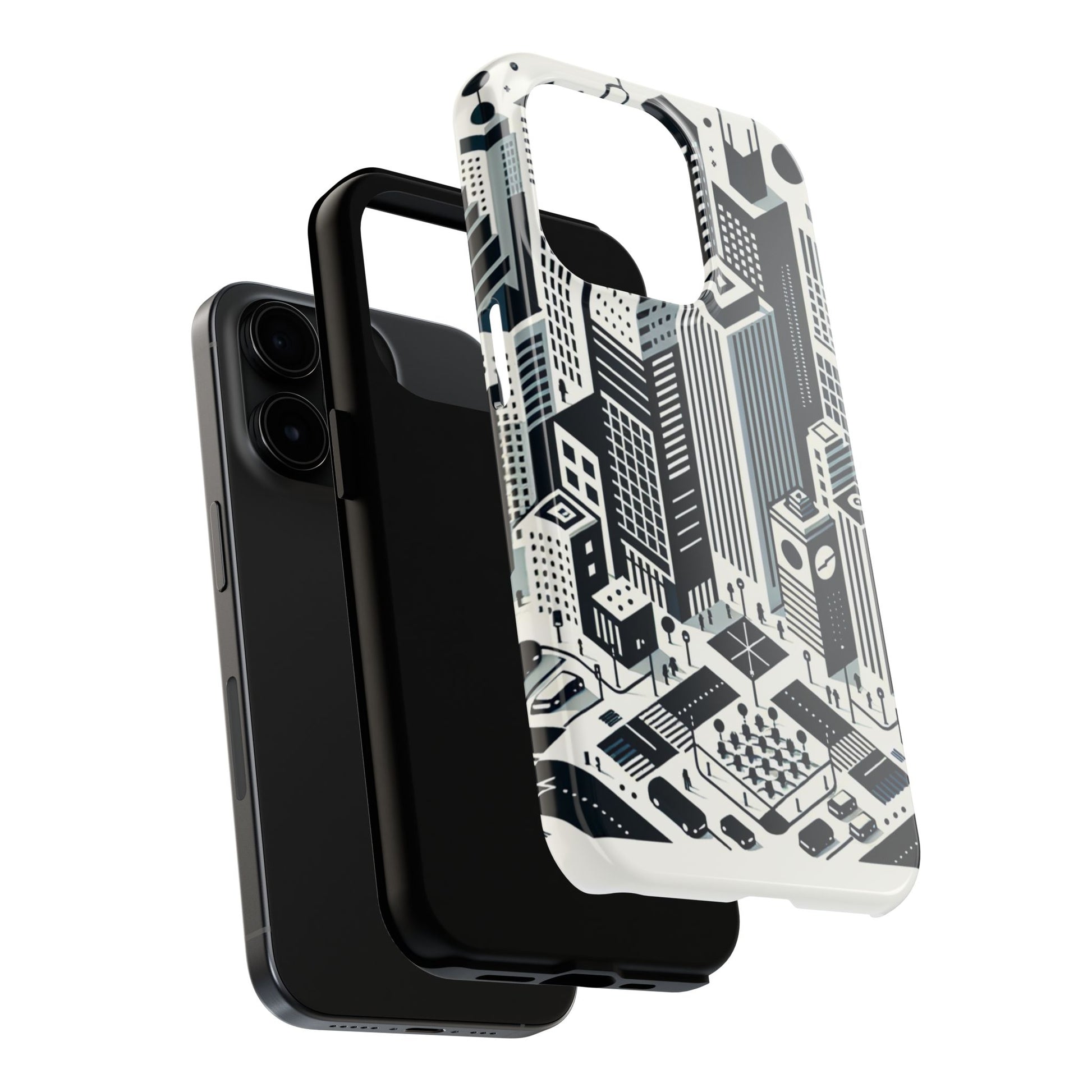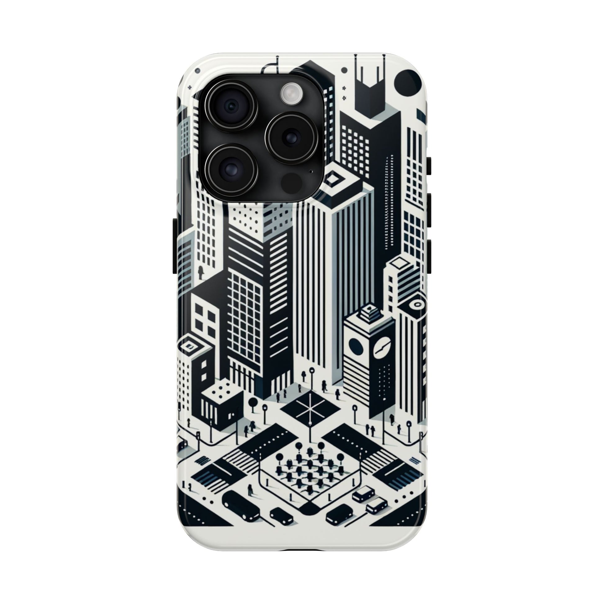 "Crisp, modern, and uncluttered, this minimalist phone case design captures the energy and elegance of a bustling metropolis. Its monochromatic palette emphasizes structural simplicity, with a seamless pattern of skyscrapers, iconic city architecture, vehicle silhouettes, and pedestrian crosswalks. Commemorate your urban love and protect your phone in style. #UrbanLife #MinimalistDesign #PhoneCase #ArchitectureLove #UrbanAesthetics #MetropolitanChic #CityLife #ModernDesign #SeamlessStyle #MonochromeMagic."