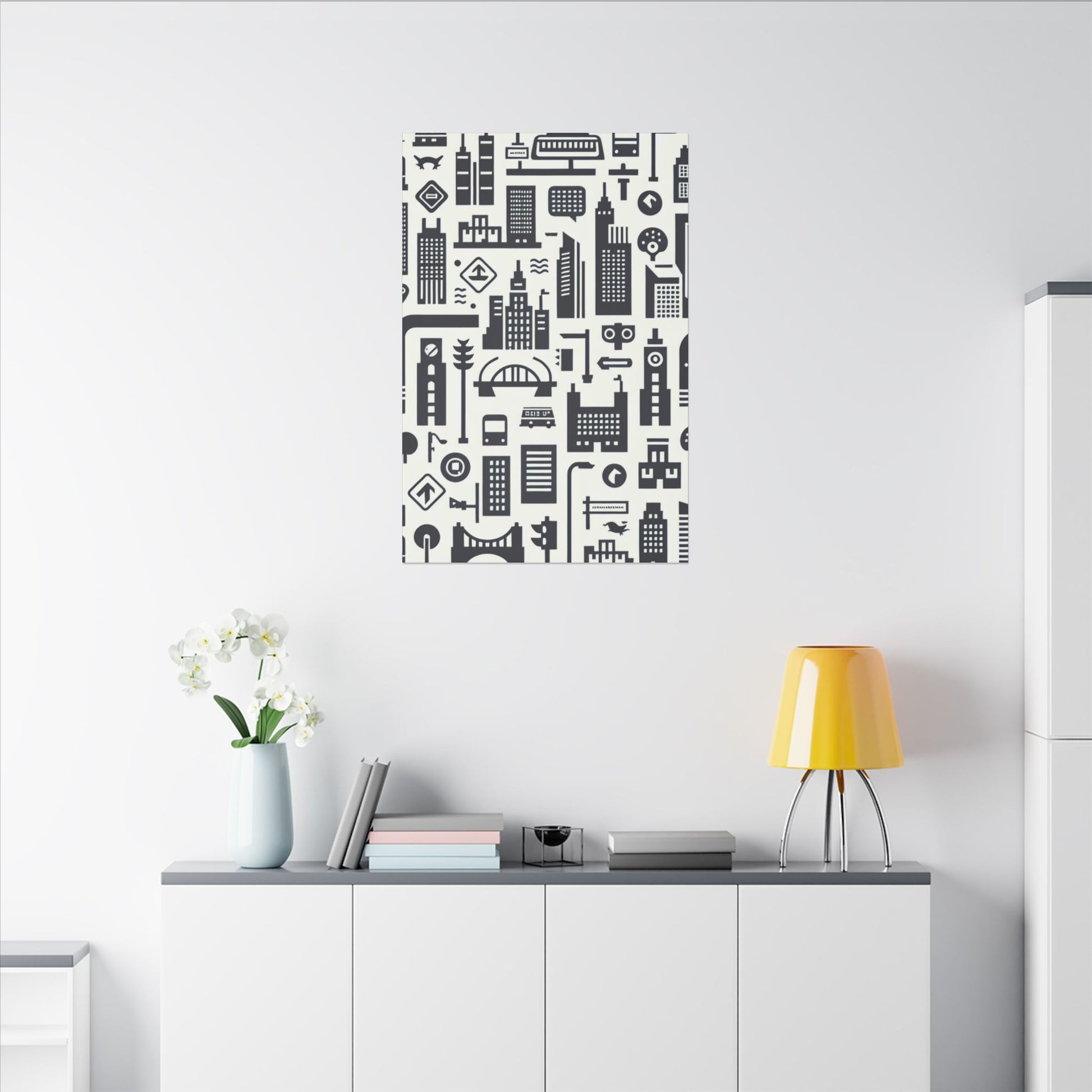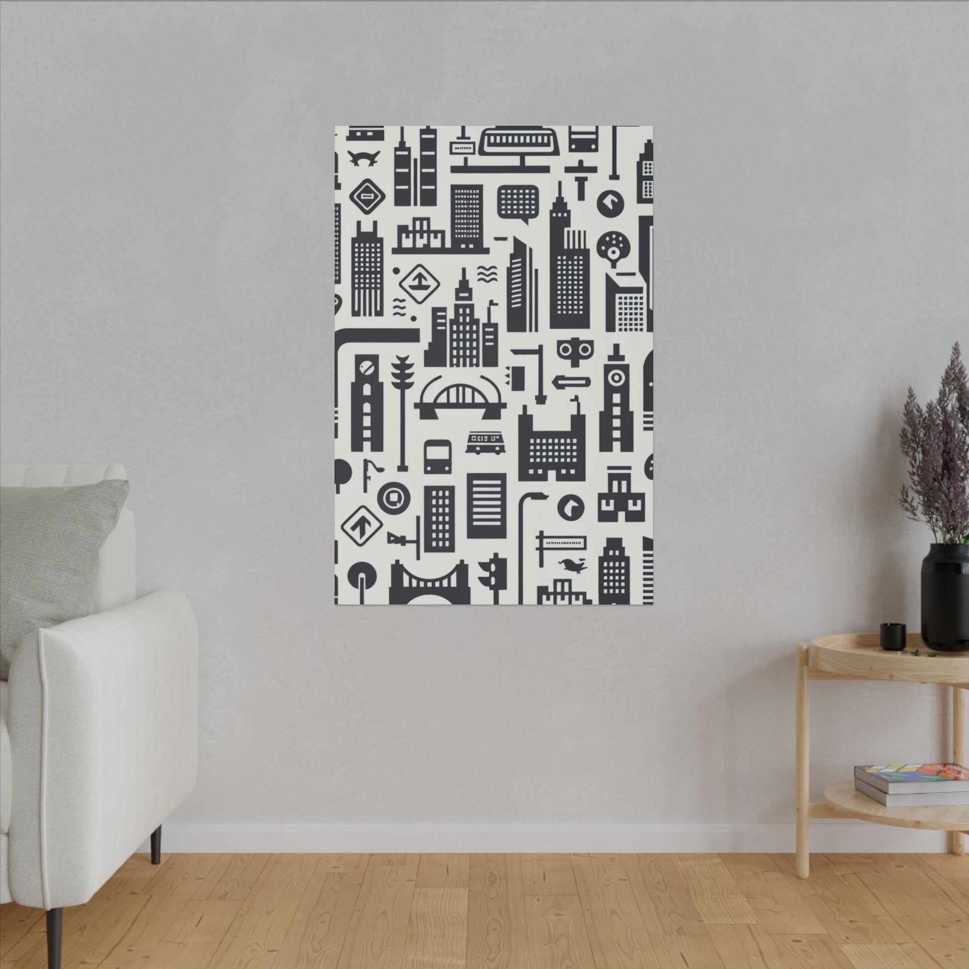 Discover your urban oasis with our minimalist cityscape canvas, seamlessly featuring iconic skyscrapers, dynamic streets, serene parks and classic bridges. Subtle hints of cafe life and traffic lights add depth to the clean black and white design, punctuated with color highlights. #CityArt #UrbanDecor #Minimalist #BlackAndWhite #CityLife #Skyscrapers #CanvasArt #StreetArt #Cityscape #WallDecor