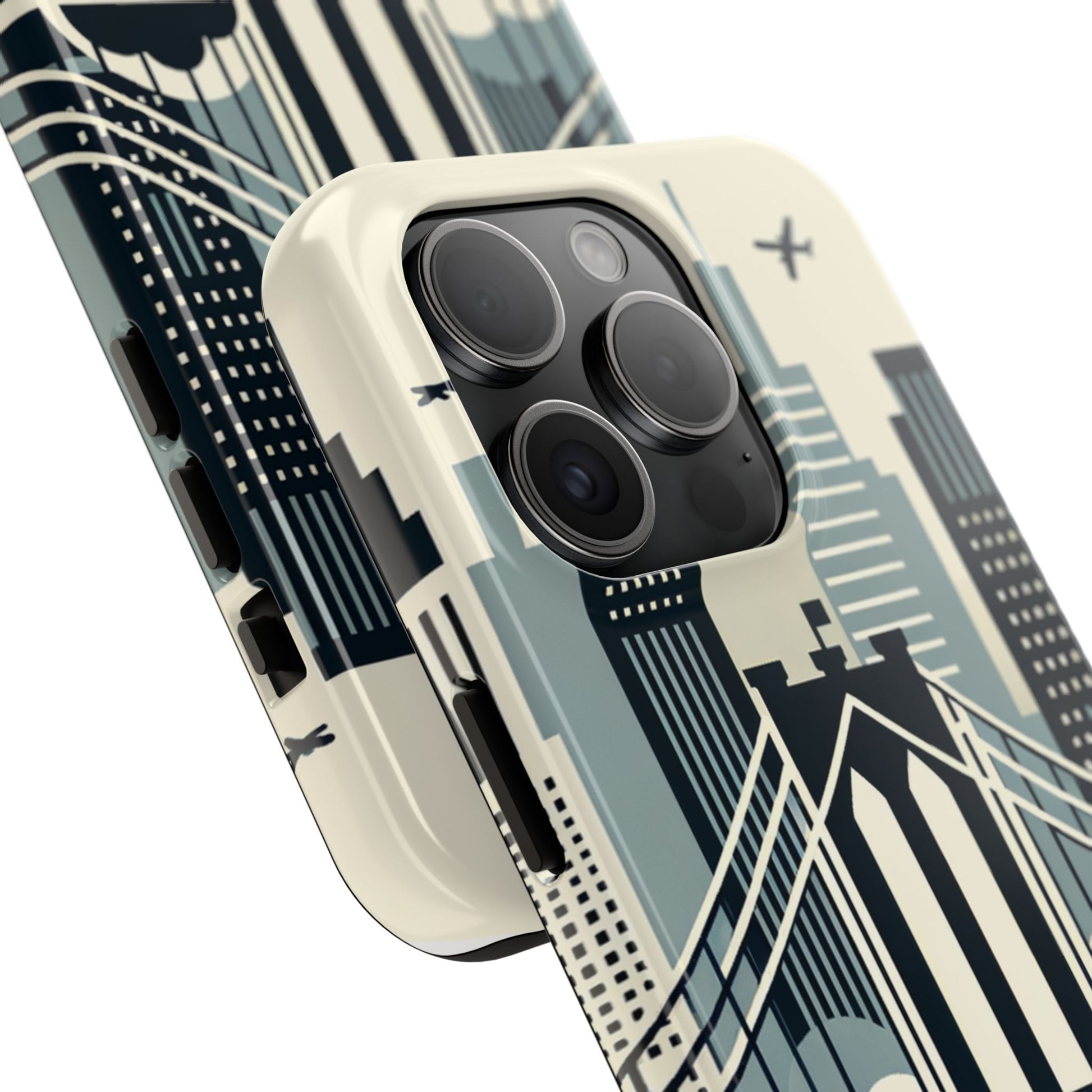 Dive into urban charm with our minimalist city-themed phone case. Adored with geometric designs of skyscrapers, bridges, taxis, and parks, it captures the harmony of city life. Boasting a sophisticated, muted color palette, this case embodies modern simplicity. #PhoneCase #ModernDesign #CityLife #UrbanChic #MinimalistStyle #GeometricPattern #SkyscraperDesign #BridgeArt #TaxiGraphic #CityParkImage