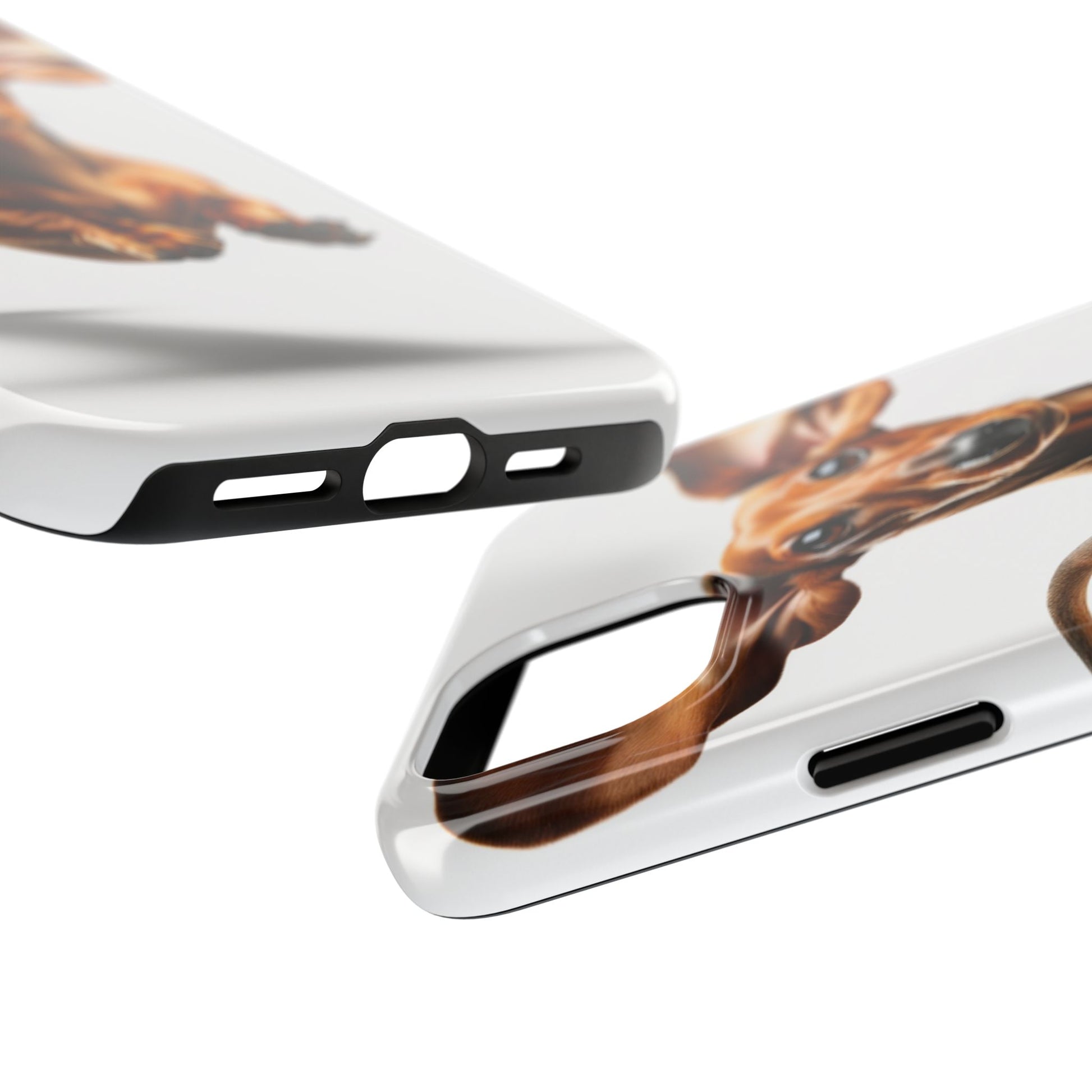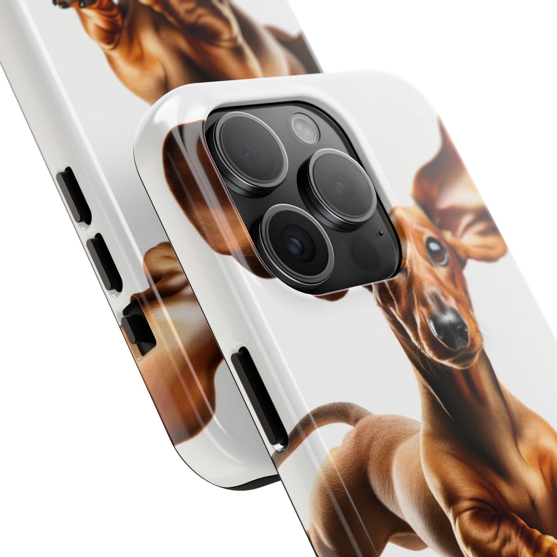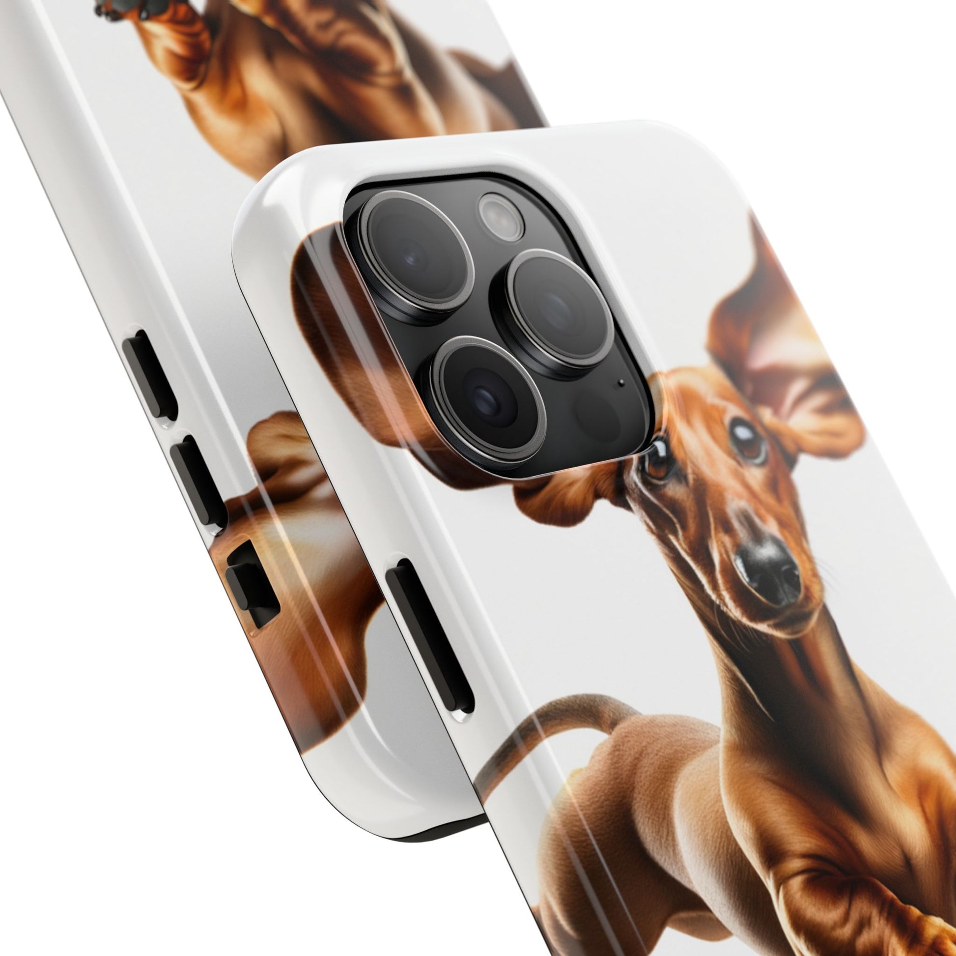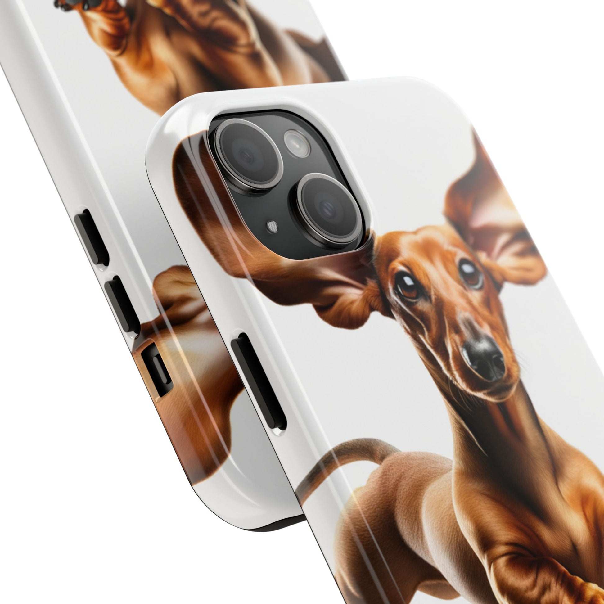 Presenting our delightful Dachshund Dog Phone Case! Watch as a fun dachshund leaps, its long ears flapping in the wind, giving a playful illusion of flight on a pure white backdrop. Wide-eyed excitement and a stretched-out, long body amplify the charm of the quirky breed. A sure delight for dachshund lovers! #PhoneCase #DoxyLover #DogDesign #DachshundGift #CanineCase #PhoneAccessories #QuirkyDesign #DachshundInFlight #PetPower #JoyInTheJump